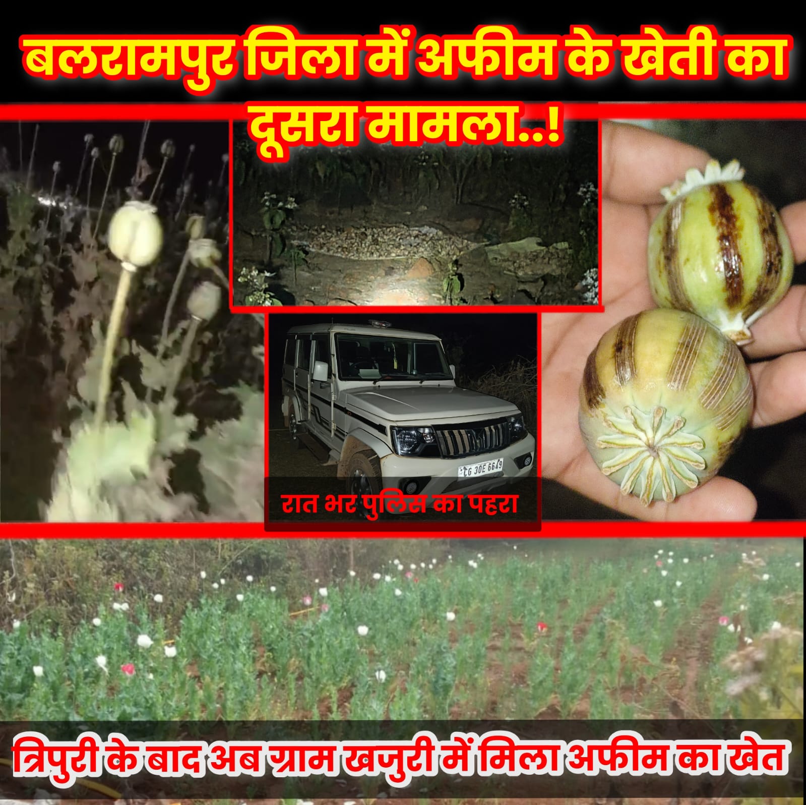 📍बलरामपुर/कुसमी। जिले में अवैध अफीम की खेती के मामले थमने का नाम नहीं ले रहे हैं। कुसमी क्षेत्र के ग्राम पंचायत त्रिपुरी/सरनाटोली में अफीम की खेती का मामला सामने आने के बाद अब एक और नया मामला उजागर हुआ है।