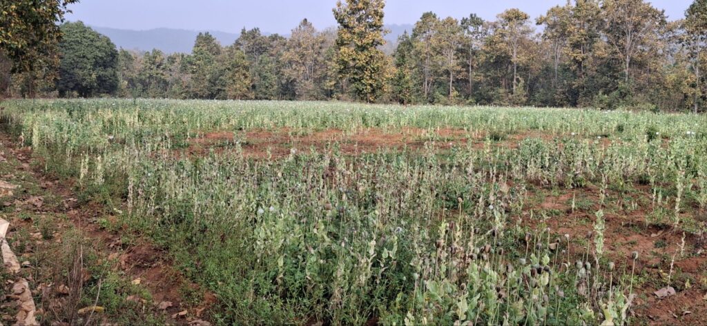 ग्राम पंचायत त्रिपुरी में लगभग 5 एकड़ में अवैध अफीम की खेती का भंडाफोड़, कुसमी पुलिस की दबिश
