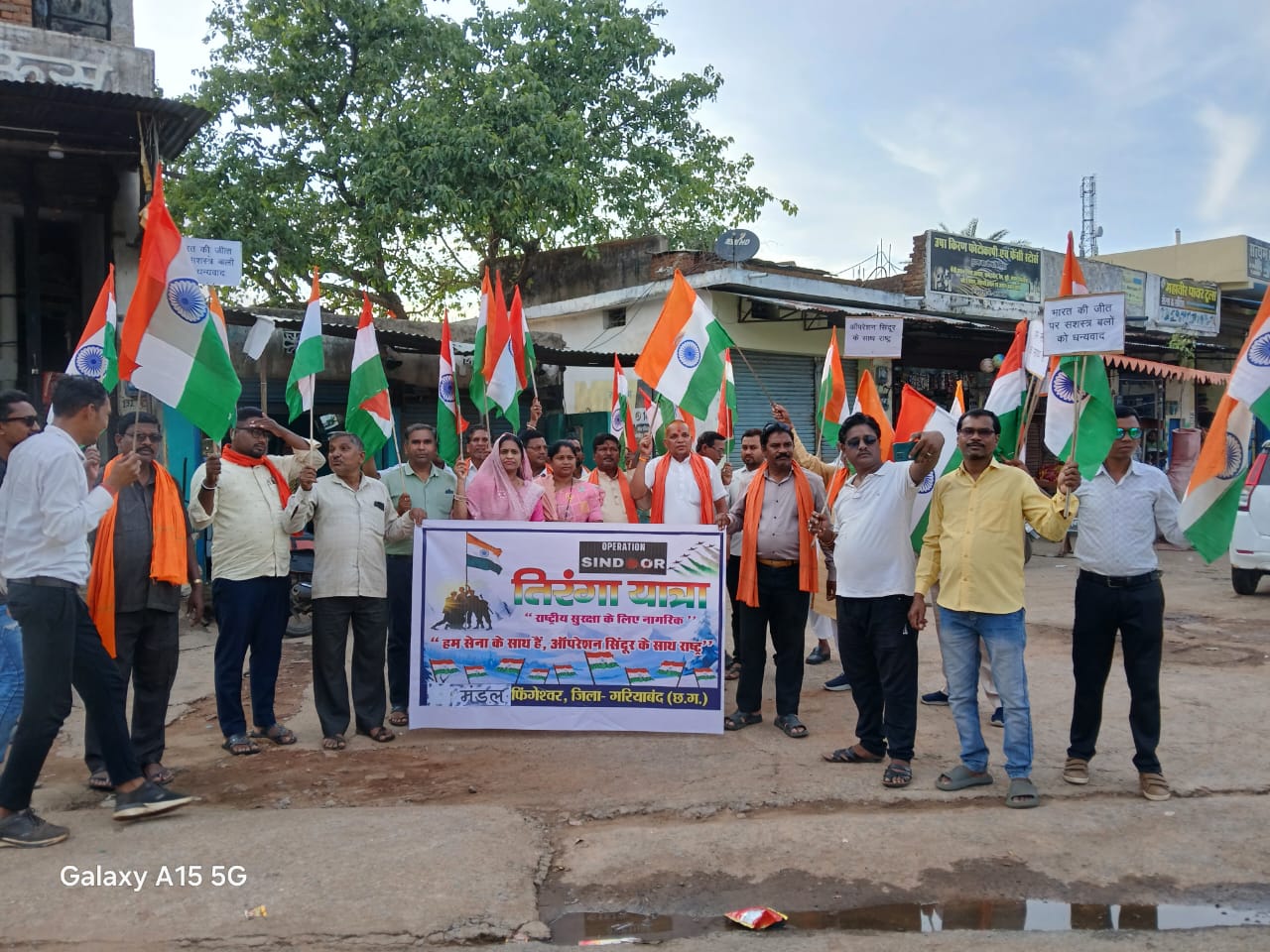 गरियाबंद/जितेन्द्रा सिन्हा – भारत सरकार द्वारा आतंकवाद के खिलाफ चलाए गए ऑपरेशन सिंदूर की ऐतिहासिक सफलता के उपलक्ष्य में भारतीय जनता पार्टी फिंगेश्वर मंडल के द्वारा एक भव्य तिरंगा यात्रा का आयोजन किया गया। भारत की तीनों सेनाओं के अद्वितीय समन्वय और पराक्रम से इस ऑपरेशन ने आतंकवाद और पाकिस्तान को करारा जवाब दिया है, जिससे सम्पूर्ण देश गौरवान्वित हुआ है।