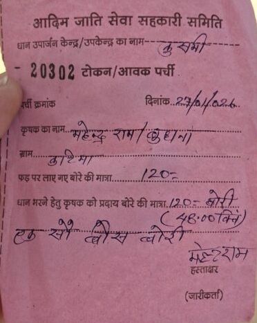 शिकायत के अनुसार, ग्राम पंचायत कटीमा निवासी किसान महेंद्र राम ने अपने खेत में मोटा धान की फसल लगाई थी। दिनांक 27 जनवरी 2026 को आदिम जाति सेवा सहकारी समिति के उपार्जन केंद्र (उपकेंद्र कुसमी) में टोकन पर्ची क्रमांक 20302 के माध्यम से धान बिक्री की प्रक्रिया पूरी की गई। किसान का कहना है कि उसने लगभग 120 बोरी (करीब 48 क्विंटल) मोटा धान समिति में जमा किया, लेकिन अब तक उसकी भुगतान राशि नहीं दी गई है।
