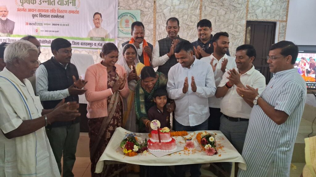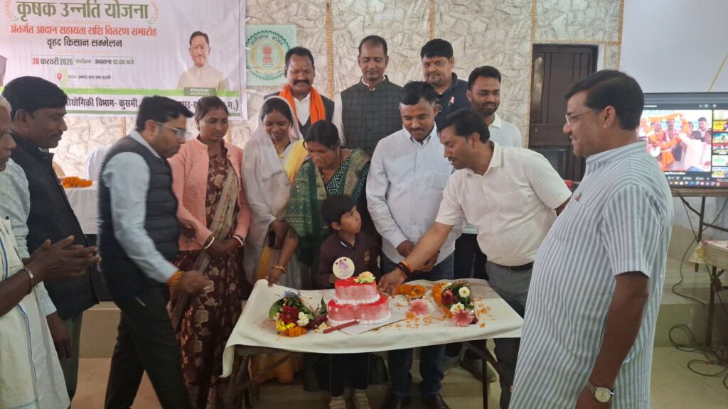 कुसमी में कृषक उन्नति योजना अंतर्गत आदान सहायता राशि वितरण — किसान सम्मेलन में विधायक उद्देश्वरी पैकरा का जन्मदिन भी मनाया गया