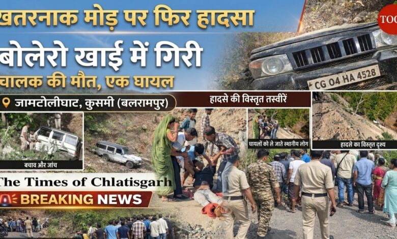 कुसमी थाना अंतर्गत ग्राम पंचायत गजाधरपुर के जामटोलीघाट में एक दर्दनाक सड़क हादसा हो गया। यहां एक बोलेरो वाहन (क्रमांक CG 04 HA 4528) अनियंत्रित होकर खाई में जा गिरी, जिससे वाहन चालक की मौके पर ही मौत हो गई, जबकि एक अन्य व्यक्ति घायल हो गया।