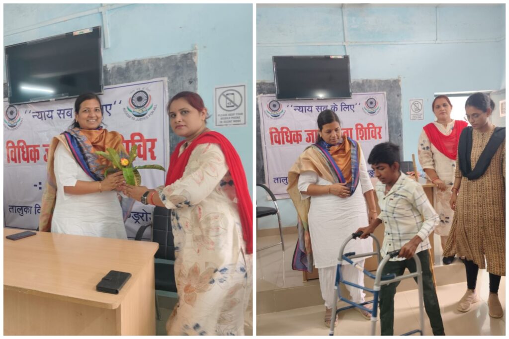 समे तालुका विधिक सेवा प्राधिकरण की अध्यक्ष ज्योति अग्रवाल के द्वारा उक्त शिविर में उपस्थित लोगों को विधिक सहायता से संबंधित जानकारी दी गई एवं दिव्यांग व्यक्तियों को न्यायाधीश ज्योति अग्रवाल के द्वारा उपयोग की वास्तु प्रदान की गई | उक्त शिविर में ए जी पी कौशल सिंह अधिवक्ता एवं पैरालीगल वालिंटियर लीलावती राठौर ,सीईओ नम्रता शर्मा, डाक्टर दीपा श्याम,वंदना तिवारी, पूजा ध्रुव उपस्थित रहे, कार्यक्रम का संचालन दिनेश सिंह दाऊ ने किया ।।