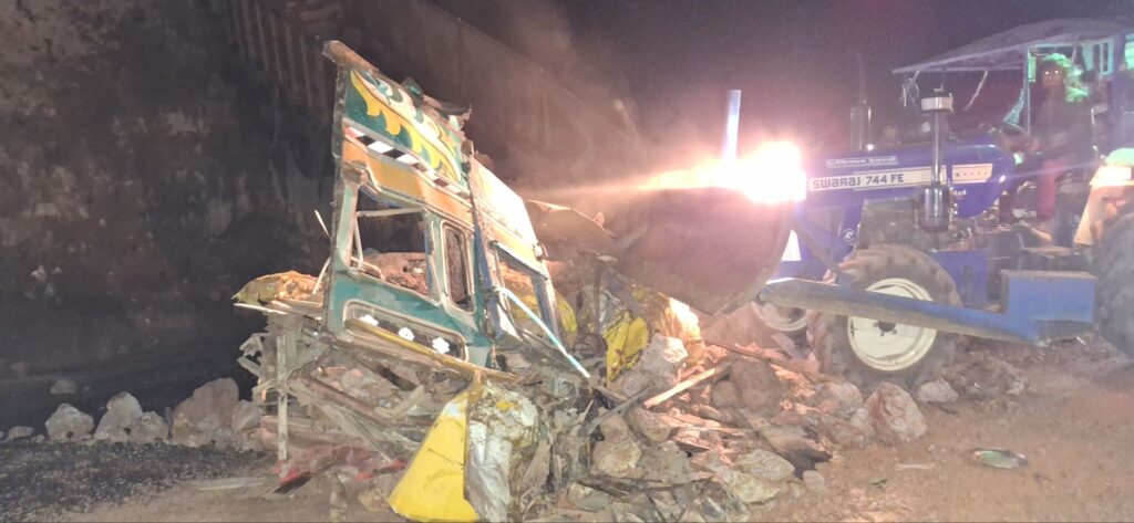 दुर्घटना के बाद ट्रक में लदा बॉक्साइट पत्थर पूरी सड़क पर फैल गया, जिससे मार्ग पूरी तरह बंद हो गया। दोनों ओर वाहनों की लंबी कतार लग गई और यातायात ठप हो गया।
