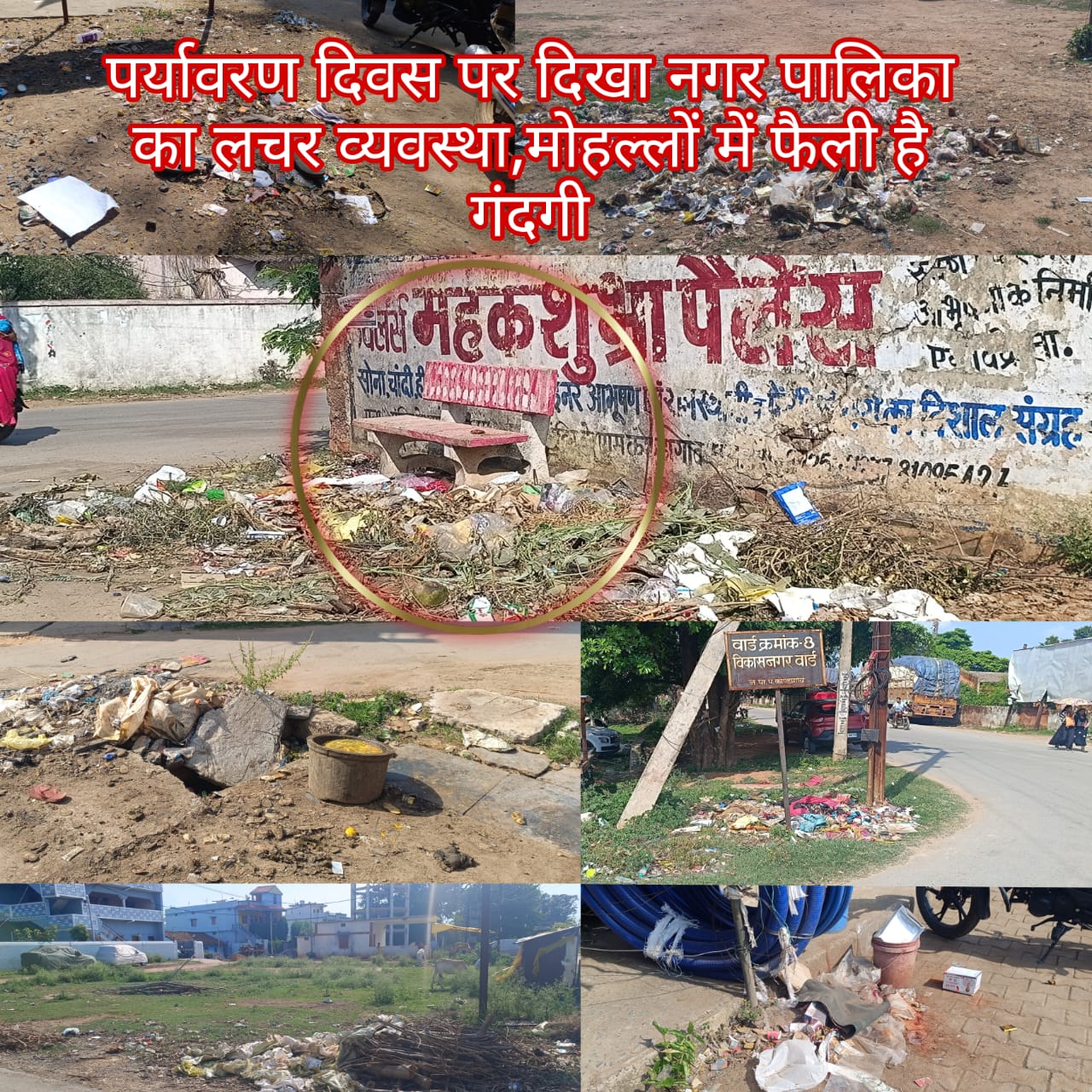 कोंडागांव/दीपक वैष्णव- शुरुआत से ही एक दो कार्य करा कर नगर पालिका परिषद वाहवाही लुटता रहा है मगर आज नगर पालिका परिषद का कुम्भकर्णी नींद पर्यावरण दिवस पर ही देखने को मिल गया, जहाँ वार्डों में कचरा फैला हुआ है कई जगह तो कचरों का अंबार लगा हुआ देख के ही लगता है कि कई महीनों से सफाई नही की गई है आप को बतादे कहा की है यह तस्वीरे हम फ़ोटो एवं ख़बरों के माध्यम से आप को दिखा रहे हैं। मरार पारा दुर्गा चौक के सामने गंदगी फैली है।