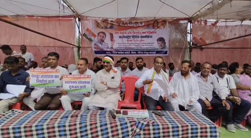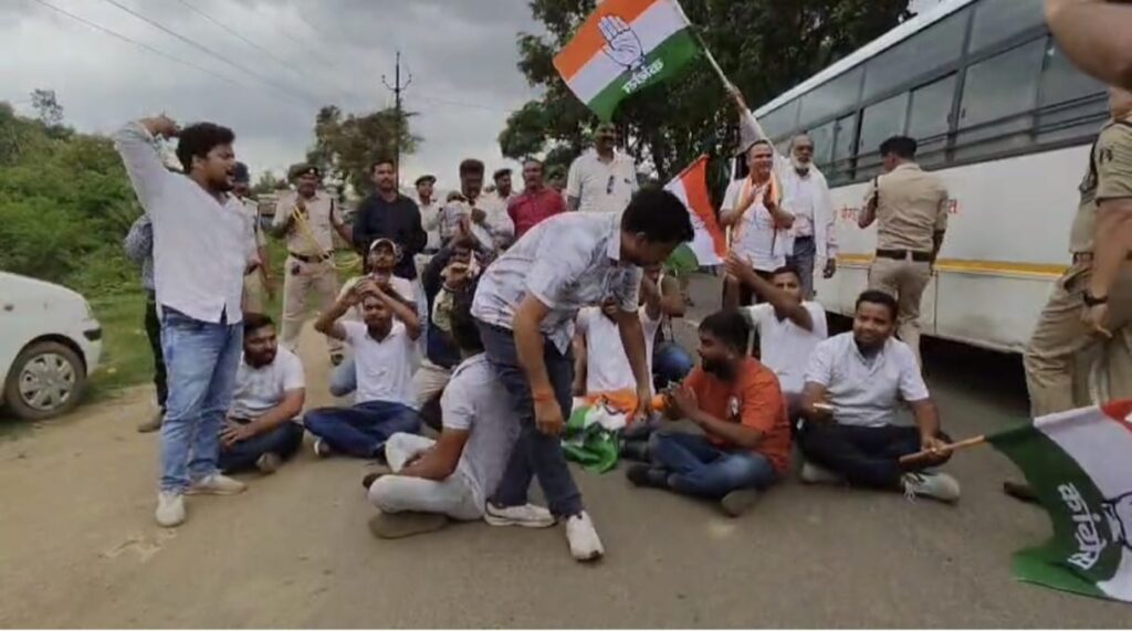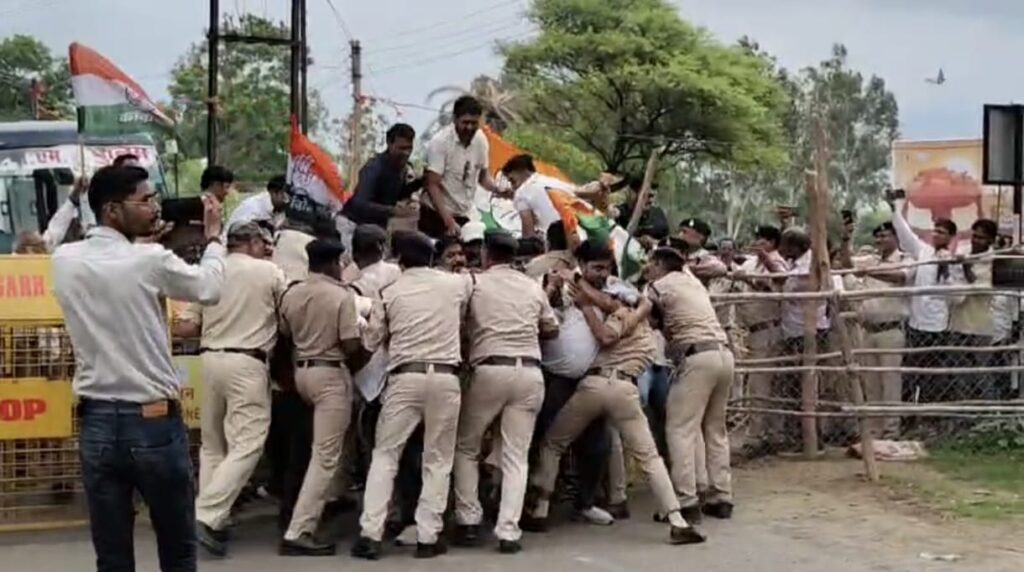 स्थानीय समस्याओं को लेकर कांग्रेस का कलेक्टर कार्यालय घेराव, पुलिस बैरिकेड तोड़कर सौंपा राज्यपाल के नाम ज्ञापन:जीपीएम