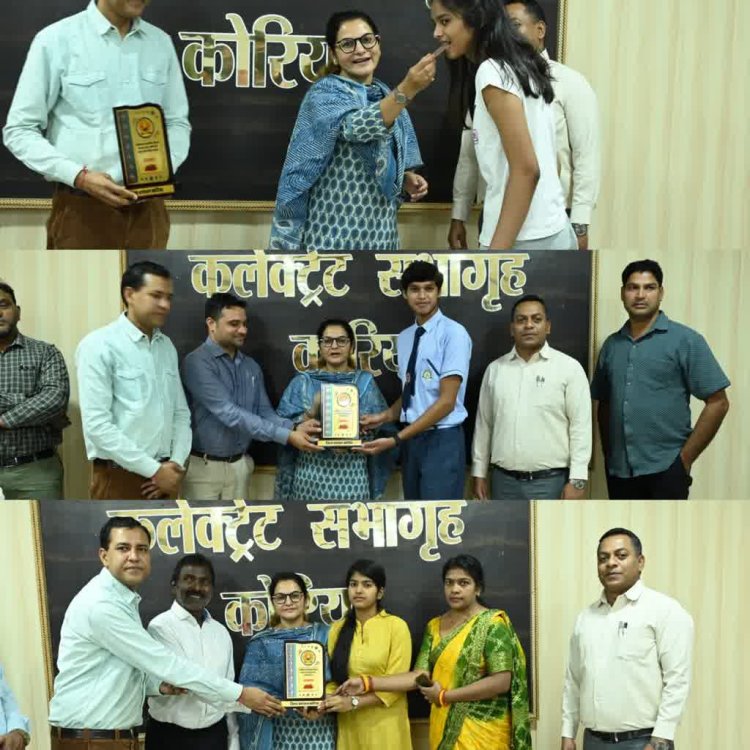 उत्कृष्ट परीक्षा परिणाम हासिल करने वाले छात्रों का सम्मान समारोह कलेक्ट्रेट सभाकक्ष, बैकुण्ठपुर में आयोजित किया गया। इस अवसर पर कलेक्टर श्रीमती चंदन त्रिपाठी ने जिले के टॉप 5 छात्रों को सम्मानित किया।