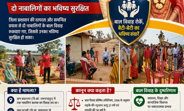 प्रशासन की सजगता से रुकवाए गए दो बाल विवाह,,दो नाबालिगों का भविष्य सुरक्षित