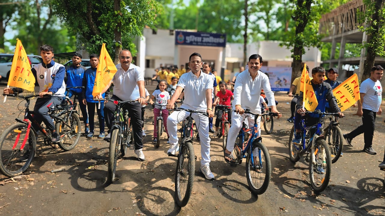 गौरैला पेंड्रा मरवाही/संजय ठाकुर: “फिटनेस का डोज़, आधा घंटा रोज़” के संदेश को जन-जन तक पहुँचाने के उद्देश्य से आज दिनांक 01 जून 2025 को गौरेला-पेंड्रा-मरवाही जिले में ‘फिट इंडिया मूवमेंट’ के अंतर्गत एक भव्य साइकिल रैली का आयोजन किया गया। यह रैली प्रातः 9:00 बजे पुलिस अधीक्षक कार्यालय से रवाना हुई, जिसे नगर पालिका अध्यक्ष गौरेला श्री मुकेश दुबे और पुलिस अधीक्षक जीपीएम श्री सुरजन राम भगत द्वारा हरी झंडी दिखाकर प्रारंभ किया गया। यह रैली नगर के प्रमुख मार्गों से होते हुए रेलवे स्टेशन तक पहुँची, जहाँ इसका समापन प्रातः 9:30 बजे हुआ।