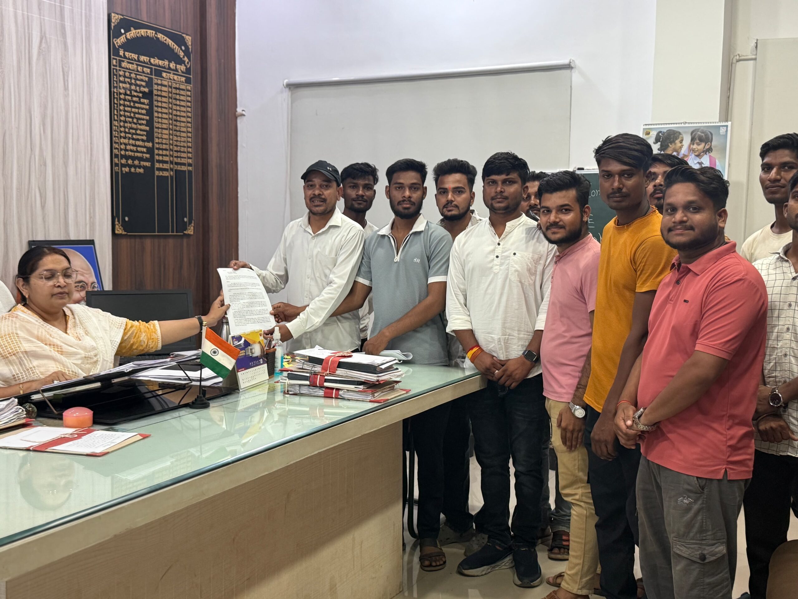जिला अध्यक्ष ने आगे बताया कि आत्मानंद स्कूल एवं शासकीय स्कूलों बजट से वंचित रखा जा रहा है जिससे विद्यार्थियों को मूलभूत सुविधाओं से वंचित रखा जा रहे है बिजली विभाग के बिल का नोटिस इन विद्यालयों में दिया जा रहा भुगतान न होनी की स्थिति में विद्युत काटने का नोटिस ये प्रशासनिक आवेदनशीलता है ओर छात्रों के अधिकार का हनन है सीजी सेट के परिणाम अभी तक घोषित नहीं हुए है परीक्षा लगभग साल भर के करीब होने को है ये सरकार युवाओं के धैर्य के साथ मजाक कर रही है और ये संविधान के अनुच्छेद 16 के तहत समान रोजगार के अवसर का उल्लंघन है एनएसयूआई ने ज्ञापन में मांग किया है युक्तियुक्तकरण की प्रक्रिया को स्थगित किया जाय शिक्षक भर्ती को वादा अनुसार शीघ्र प्रारंभ किया जाए, आत्मानंद विद्यालयों में बजट दिया जाए शासकीय विद्यालय में भेजे गए बिजली विभाग के नोटिसों को निरस्त किया जाए,सीजी सेट के परिणाम अविलंब जारी किया जाए! इस कार्यक्रम में मुख्य रूप से बलौदाबाजार विधानसभा अध्यक्ष सूर्यकांत वर्मा,ब्लॉक अध्यक्ष जय जायक,शहर अध्यक्ष हर्ष सिन्हा,सूरज वर्मा,ईश्वर साहू,जय सिंह ठाकुर,भूपेंद्र सेन,त्रिदेव वर्मा एवं एनएसयूआई कार्यकर्ता उपस्थित रहे ।
