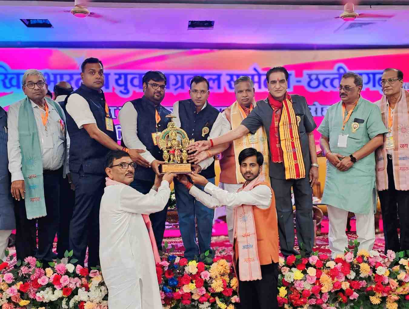 सूरजपुर/कौशलेन्द्र यादव अखिल भारतीय युवा अग्रवाल सम्मेलन की छत्तीसगढ़ इकाई द्वारा रायपुर के सालासर बालाजी धाम में आयोजित दो दिवसीय राष्ट्रीय युवा बैठक व शपथग्रहण समारोह में सूरजपुर के संस्कार अग्रवाल को जिले का युवा जिलाध्यक्ष नियुक्त किया गया। उन्हें सम्मेलन के राष्ट्रीय अध्यक्ष एवं प्रदेश के वित्त मंत्री ओपी चौधरी सहित वरिष्ठजनों के हाथों महाराजा अग्रसेन जी की प्रतिमा व पटका भेंटकर मंच से सम्मानित किया गया।