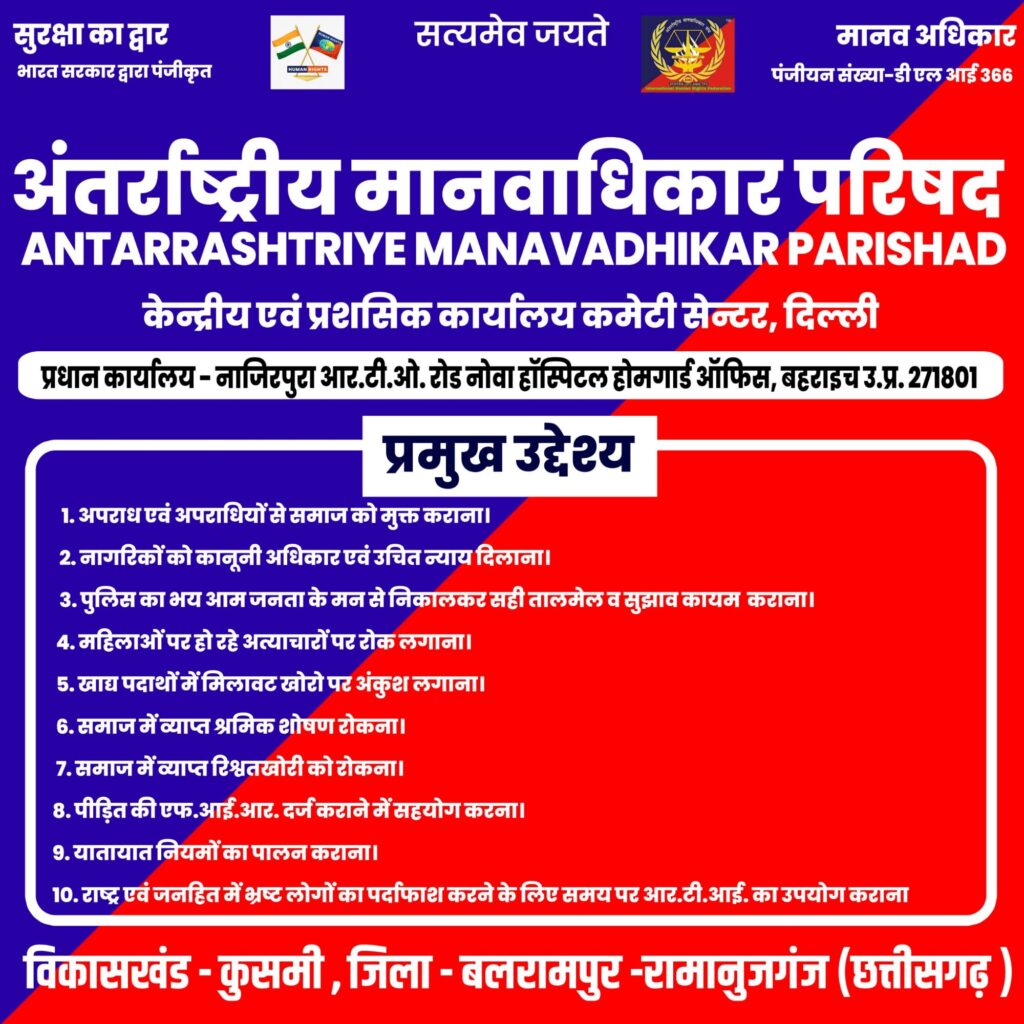 चैत पूर्णिमा के पावन अवसर पर आयोजित सरहुल (खद्दी) पूजा एवं हनुमान जयंती के दौरान तहसील कुसमी के तापा मदगुरी में सेवा और समर्पण का एक प्रेरणादायक उदाहरण देखने को मिला। अंतर्राष्ट्रीय मानवाधिकार परिषद, जिला बलरामपुर एवं तहसील/तापा इकाई के संयुक्त तत्वावधान में श्रद्धालुओं के लिए विशाल पेयजल सेवा शिविर का आयोजन किया गया।