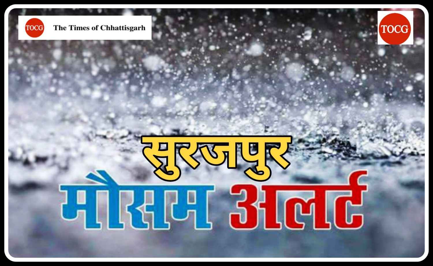 सूरजपुर,/कौशलेन्द्र यादव। आगामी 24 घंटे में सूरजपुर, बलरामपुर, कोरिया तथा मनेन्द्रगढ़-चिरमिरी-भरतपुर क्षेत्र में कहीं-कहीं अत्यंत भारी वर्षा की संभावना है। मौसम विभाग के मुताबिक बारिश के दौरान तेज गर्जना, बिजली गिरने और तेज हवाएं भी चल सकती हैं।