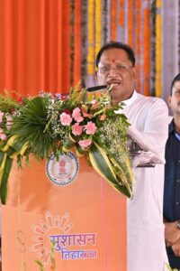 मुख्यमंत्री साय ने कहा कि आम जनता की समस्याओं के समाधान के लिए 3 चरणों में सुशासन तिहार चल रहा है। पहले चरण में लोगों से आवेदन लिए गए, दूसरे चरण में उनका समाधान किया गया और तीसरे चरण में समाधान शिविरों का आयोजन किया जा रहा है। उन्होंने कहा कि वे स्वयं और मंत्रिगण समाधान शिविर में शामिल हो रहे हैं। विकास कार्यों का औचक निरीक्षण किया जा रहा है और समीक्षा बैठक आयोजित किया जा रहा है। अभी तक मैं 11 जिले का दौरा कर चुका हूं । मुख्यमंत्री ने कहा कि हमारी सरकार ने मोदी की अधिकांश गारंटियों को पूरा कर लिया है। रामलला दर्शन योजना के तहत श्रद्धालुओं को अयोध्या धाम का दर्शन करा रहे हैं। तीर्थदर्शन योजना पुनः प्रारंभ की गई है। छत्तीसगढ़ मार्च 2026 तक नक्सल मुक्त राज्य बनने की ओर तेजी से अग्रसर है। उन्होंने कहा कि 1460 ग्राम पंचायतों में अटल डिजिटल सुविधा केंद्र प्रारंभ किए गए हैं। आने वाले 6 महीने में 5 हजार पंचायतों में इनकी स्थापना की जाएगी और जल्द ही सभी पंचायतों में इन सुविधा केन्द्रों की स्थापना होगी। इन केन्द्रों में हितग्राही महतारी वंदन योजना, सामाजिक सुरक्षा पेंशन जैसी योजनाओं की राशि का आहरण कर सकेंगे और आय, जाति प्रमाण पत्र आदि बनवा सकेंगे। मुख्यमंत्री ने कहा कि भूमि के पंजीयन में अनेक रिफॉर्म किए गए हैं। अब रजिस्ट्री करते ही नामांतरण का काम हो जाएगा ये बहुत बड़ा रिफॉर्म है। रजिस्ट्री की प्रक्रिया को पारदर्शी और सुगम बनाया गया है।