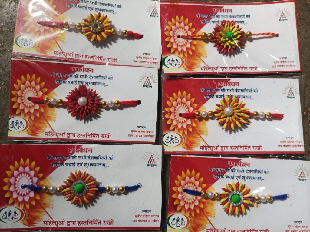 Women of Mainpur move towards self-reliance with handmade rakhis. Rakhis are woven from paddy, silk thread, rice, pearls and hopes.