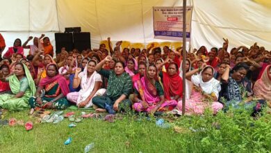 मध्यान भोजन रसोइया संघ ने वेतन वृद्धि सहित अपनी तीन सूत्रीय मांगों को लेकर बैठे तीन दिवसीय धरने पर