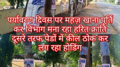 पर्यावरण दिवस पर महज़ खाना पूर्ति कर विभाग मना रहा हरित क्रांति दूसरे तरफ पेड़ो में कील ठोक कर लग रहा होडिंग:कोंडागांव